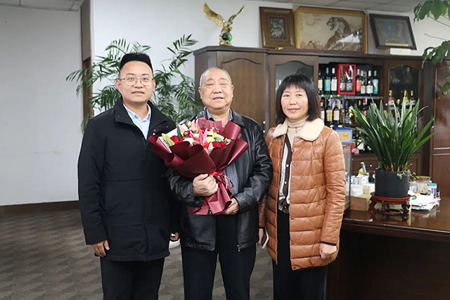 集團(tuán)黨委書(shū)記丁亞龍、工會(huì)主席肖麗琴向省勞動(dòng)模范、慈善楷模朱玉寶先生致以新春?jiǎn)柡?!朱玉寶表示感謝并祝宏寶全體員工春節(jié)快樂(lè)!闔家幸福!